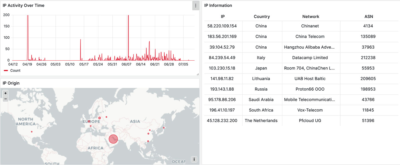 Between June 7 and June 21, we recorded 227 attempts to exploit CVE-2024-4577 on Forescout’s Adversary Engagement Environment (AEE) from the following IP addresses: